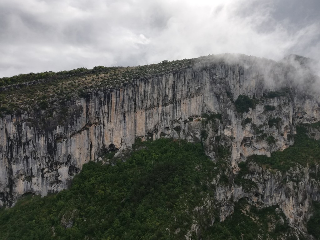 Climbing in Verdon is very technical and with lots of traverses… I am not a fan of them, so I had some struggles in one route, where even the bolts weren’t that close… From the topo in the guidebook looked like a small traverse passage but in fact it was the whole pitch… I was so happy, when I reached the anchor and screamed “Max, vâche” (safe in French, I even learned some new words 🙂 ).
