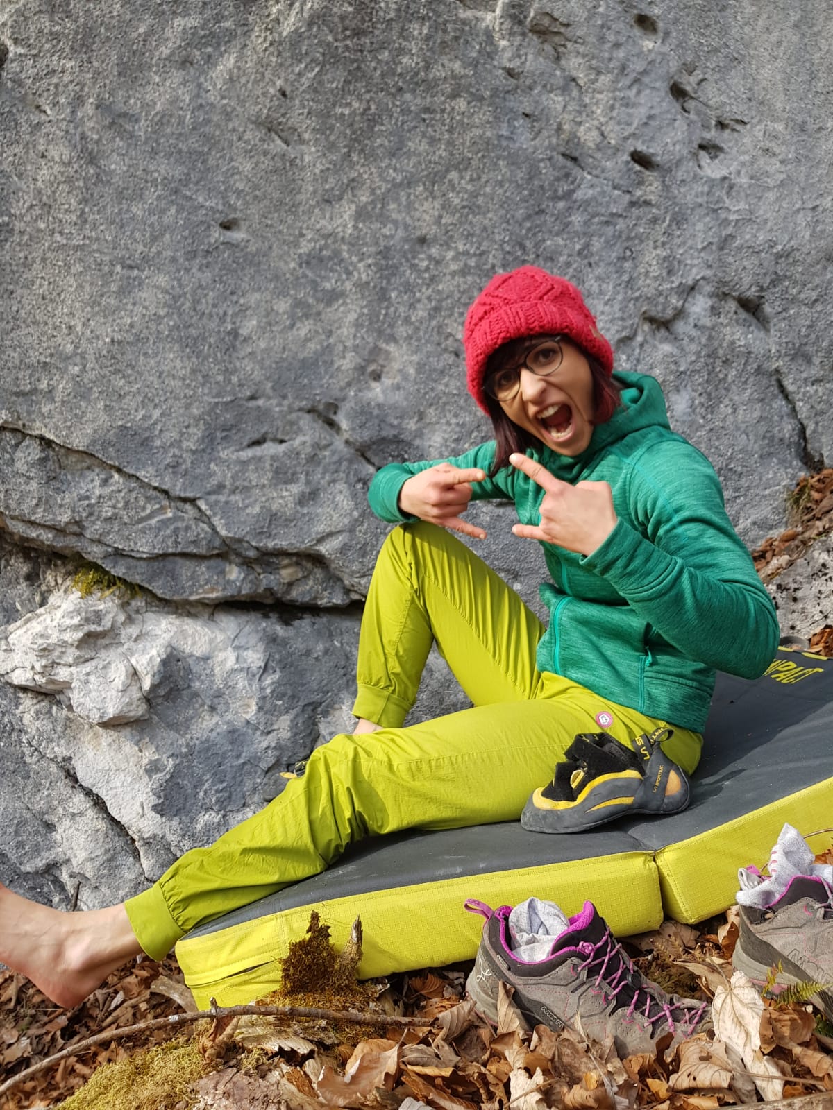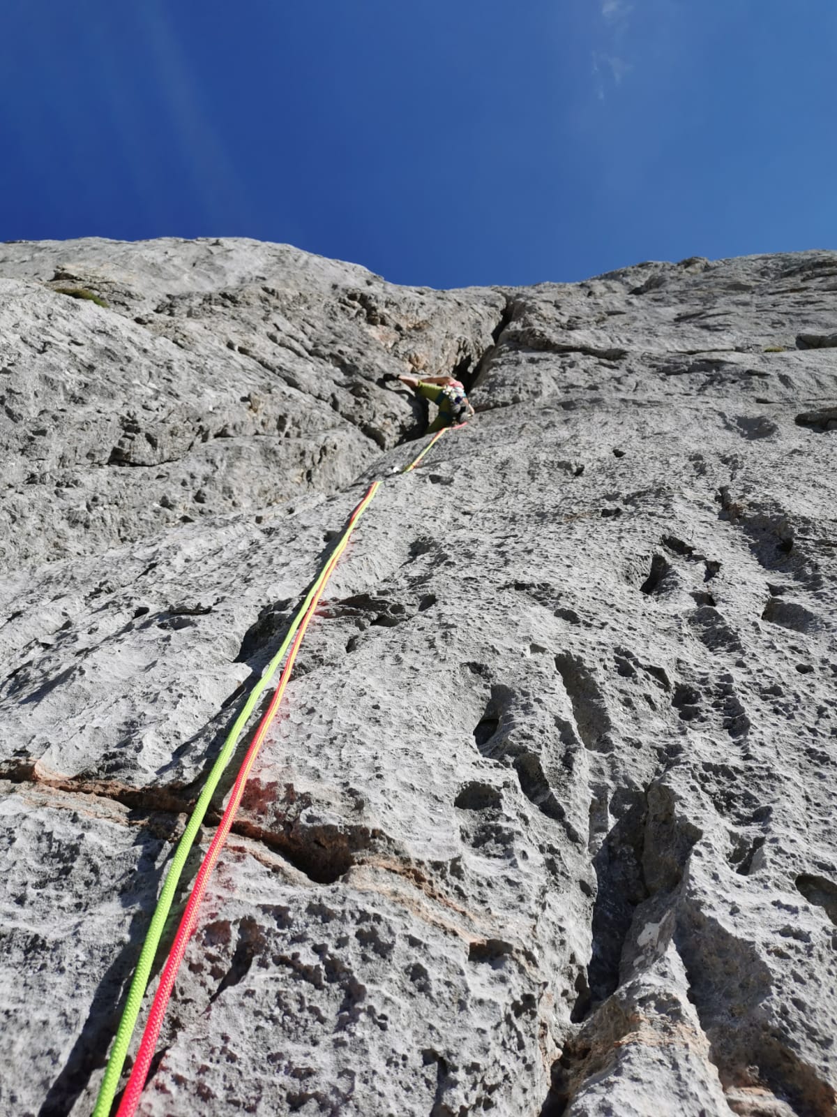 I will spare you the details of how everything went wrong, from the planning to communication, but as an experienced climber I had thought I had everything under control. I was climbing a 70 meter long route with a 70 meter rope and just before the end of it, I saw a solid block of stone the size of my upper body. I first knocked on it and it sounded okay, so I decided to trust it and when I wanted to take a quickdraw from my harness I suddenly realized… S**T, I DON’T FEEL ANY GRAVITY :O…